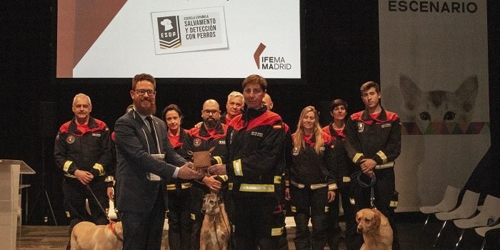 Izquierdo quiso «agradecer al jurado, formado por Iberzoo+Propet, AMVAC y AEDPAC, la concesión de este premio» y recordó la importancia de «tener apoyos para garantizar el bienestar de nuestros perros de rescate, un aspecto que para la ESDP es esencial, así que gracias a las empresas que, como Elanco y LetiFend, nos ayudáis a salvar vidas».